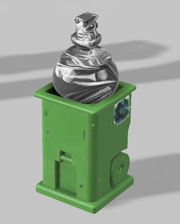 knight: trash can with angular cut mimics the angulariy of the knight